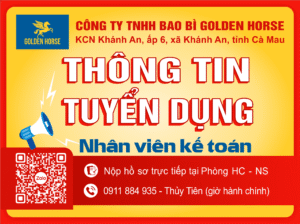 CÔNG TY TNHH BAO BÌ GOLDEN HORSE được thành lập vào ngày 20 tháng 11 năm 2013 với nhà máy sản xuất Bao bì đưa vào hoạt động năm 2015, là Công ty chuyên sản xuất các loại bao bì: nhựa và giấy,… sử dụng cho các mặt hàng ngành thủy sản đông lạnh và thực phẩm, năng suất hoạt động sản xuất khoảng từ 1.200 tấn/năm.